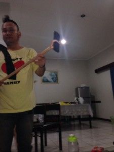 Masih dari dunia kebersihan. Jika tadi yang digunakan sebagai tongsis adalah sendok pengki, kali ini ide membuat tongsis diciptakan oleh pria ini dengan menggunakan gagang pengki. Hmmm, tapi smartphone-nya aman tidak? Gerak sedikit, bisa-bisa smartphone kesayangan jatuh berkeping-keping.